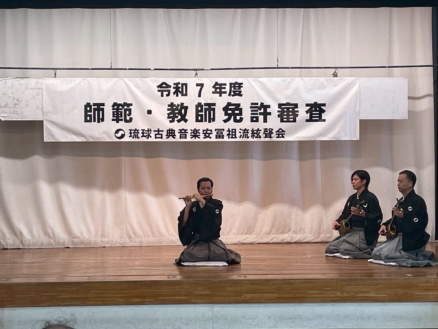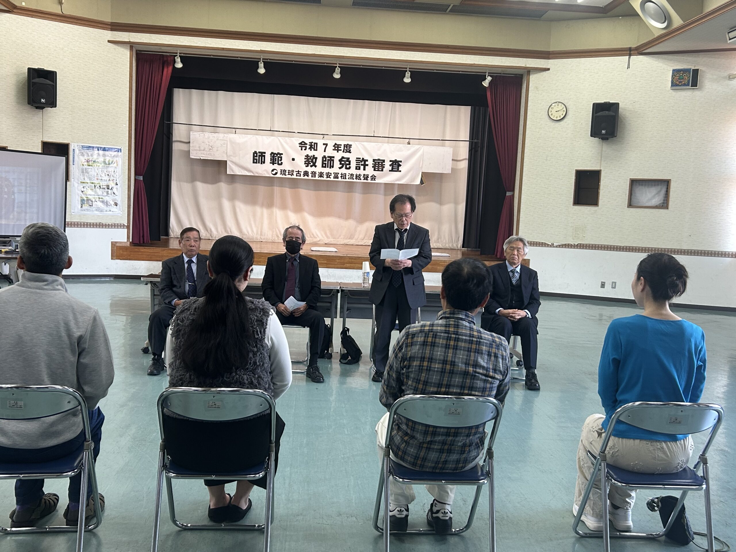 令和7年度の師範・教師免許審査が、3月7日・8日の両日にわたり豊見城市社会福祉センターにおいて開催されました。会場内は、長年の修練を積み重ねてきた受審者の皆様による静かな熱気と、一瞬の隙も許されない張り詰めた緊張感に包まれていました。その厳しい審査を乗り越え、見事合格を手にされた方は下記の通りです。