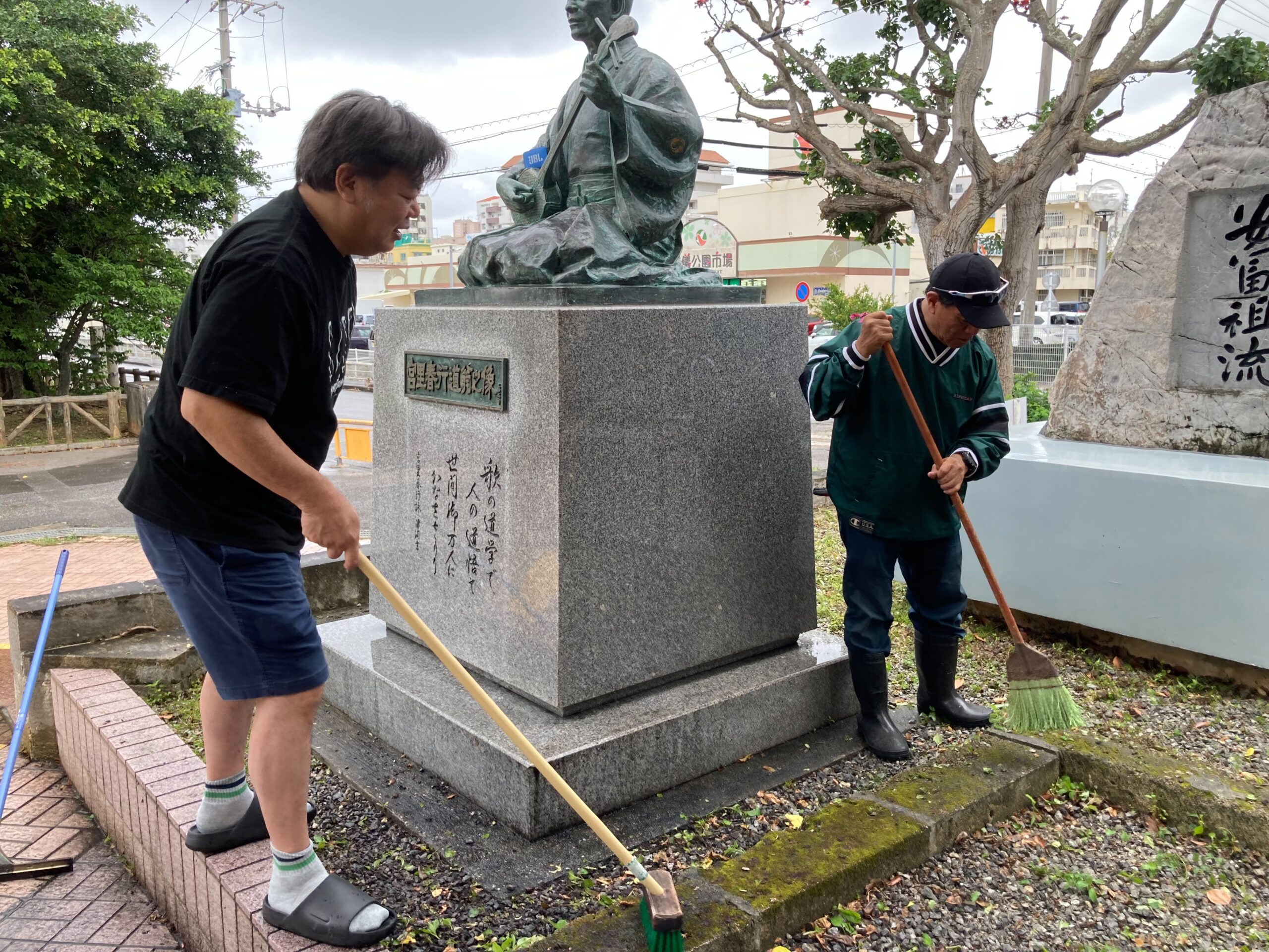 令和8年4月25日、明日の例祭に向けて会場の清掃終了いたしました。多忙な中、朝早くから隅々まで会場を清めてくださった執行部の皆様、本当にありがとうございました。 清々しい気持ちで明日を迎えることができます。明日は、新たに師範・教師となられた皆様が、この場で三線を披露されます。整った最高の舞台で、日頃の研鑽が素晴らしい音色となって響き渡ることを、心より願っております。